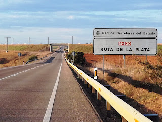 Matkalla pidin muutaman pitkän tauon tien vieressä sopivan pusikon tullessa lähettyville. Tänään ei ollutkaan niin paljon avaria peltonäkymiä kuin tähän asti. Toki peltoja oli paljon. Viitisen kilometriä ennen Tabaraa oli Pozuelon kylänen, jossa baari ja ravintola.