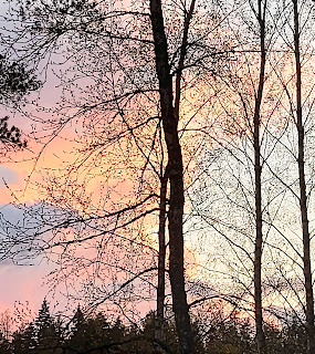 Maanantaina olimme mökillä puunkaadossa: mies ja veljet hänellä apuna. Vanhin heistä kiipesi tikkaiden avulla puuhun sitomaan köyden, joka kiristettiin vaijeritaljalla toiseen puuhun ennen kuin kaato alkoi. Kuusi isoa pitkää koivua kaatui nurin juuri siihen paikkaan, mihin oli tarkoituskin. Taitavia veljeksiä! Myös nykyiset akkukäyttöiset moottorisahat ovat hyviä, koska ei sitten sotkeudu johtoihin eikä ole käynnistysvaikeuksia. Tiistaina lähdimme miehen kanssa kaksin mökille jatkamaan puutalkoita. Mies sahasi oksat rungoista ja risut oksista erilleen. Minä kannoin risuja kasaan ja kannoin oksien kappaleet peräkärryyn, jolla toimme ne kotiin. Olipa hyvää kuntoilua mäkeä ylös tai ojan yli kulkemista!